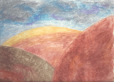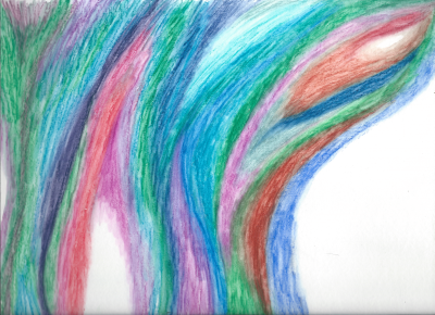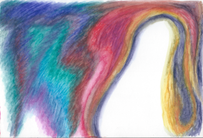 Not long before my manic episode in August ’19, I started using watercolor paints in addition to sticks and pastels. My drawing teacher in college told me one day, “You want to paint,” upon observing the way I drew, and she was right: I was fascinated by the act of painting, though it would be years before I decided to take it up, just for shits and grins to see what happened. My earliest efforts were mostly experimental so I could get familiar with the paints and brushes, but there were some interesting results.