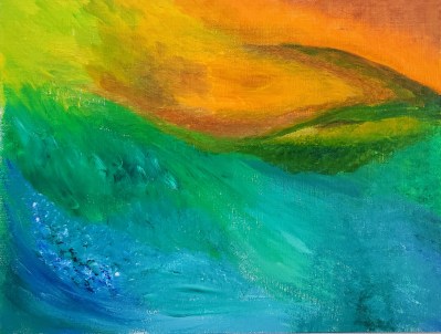 Like most of my art, I had no particular notion of what I was doing when I began, and got a lot of satisfaction out of the act as well as the result of the painting. Thus I became somewhat obsessed with painting and began spending a lot of time doing it. I consider it fortuitous that I began painting when I did, because I found it to be therapeutic at a very difficult time, and in hindsight, useful for analyzing my mental state at the time. They were mostly abstract explorations of color and flow, but they seemed emotionally expressive to me. I noticed a fondness for contrasting yellow and orange with blue.