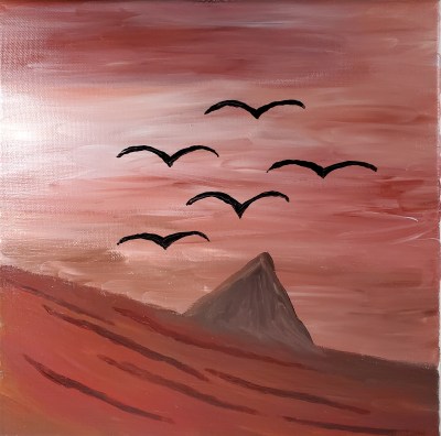 As if to continue the “surfacing” theme, I did several paintings of the horizon: some on the ocean, some on land. Some also featured birds.